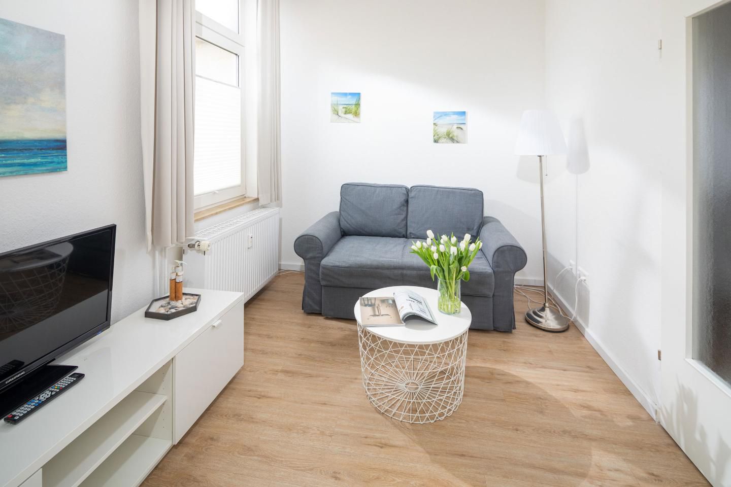 33 m² große, helle und moderne 2 Zimmer Ferienwohnung. Schnelles W-LAN. Strand- und zentrumsnah.