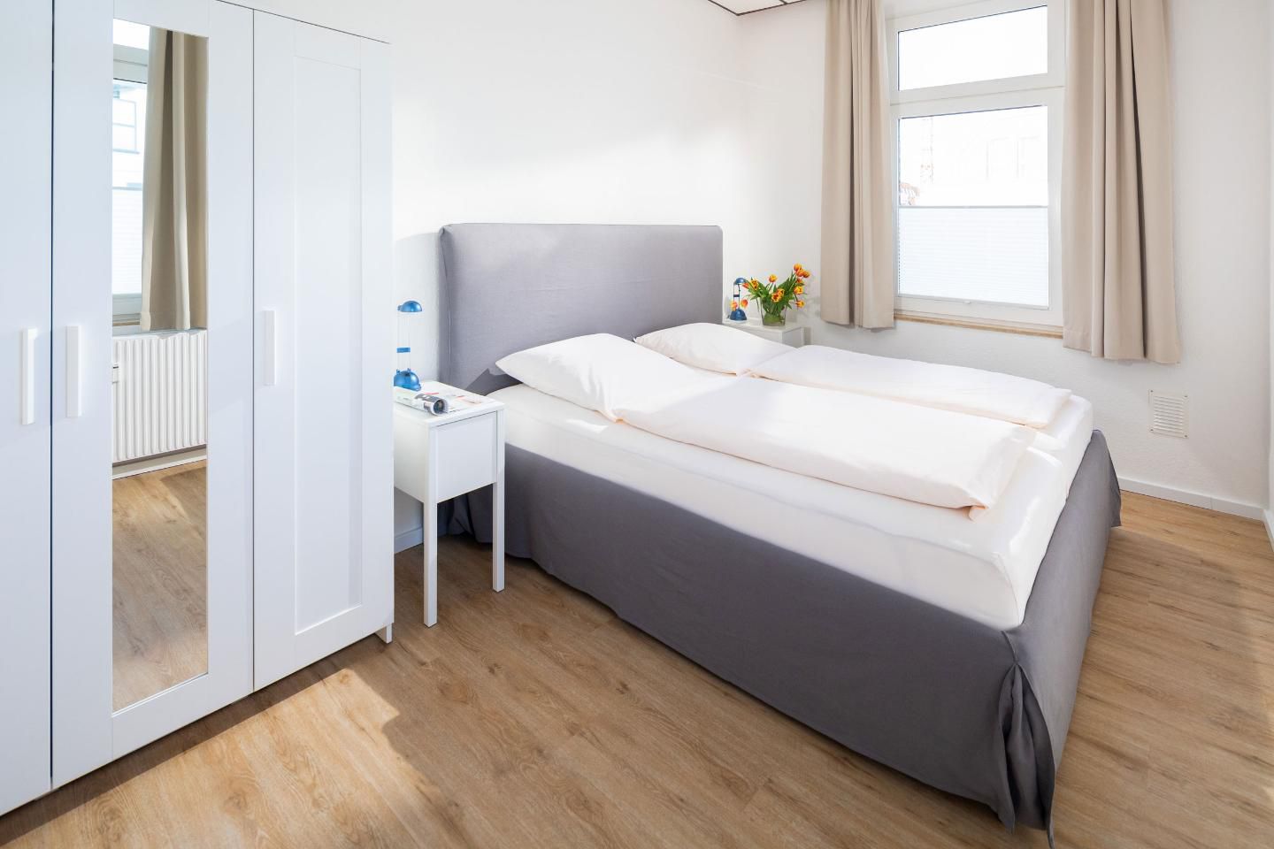 33 m² große, helle und moderne 2 Zimmer Ferienwohnung. Schnelles W-LAN. Strand- und zentrumsnah.