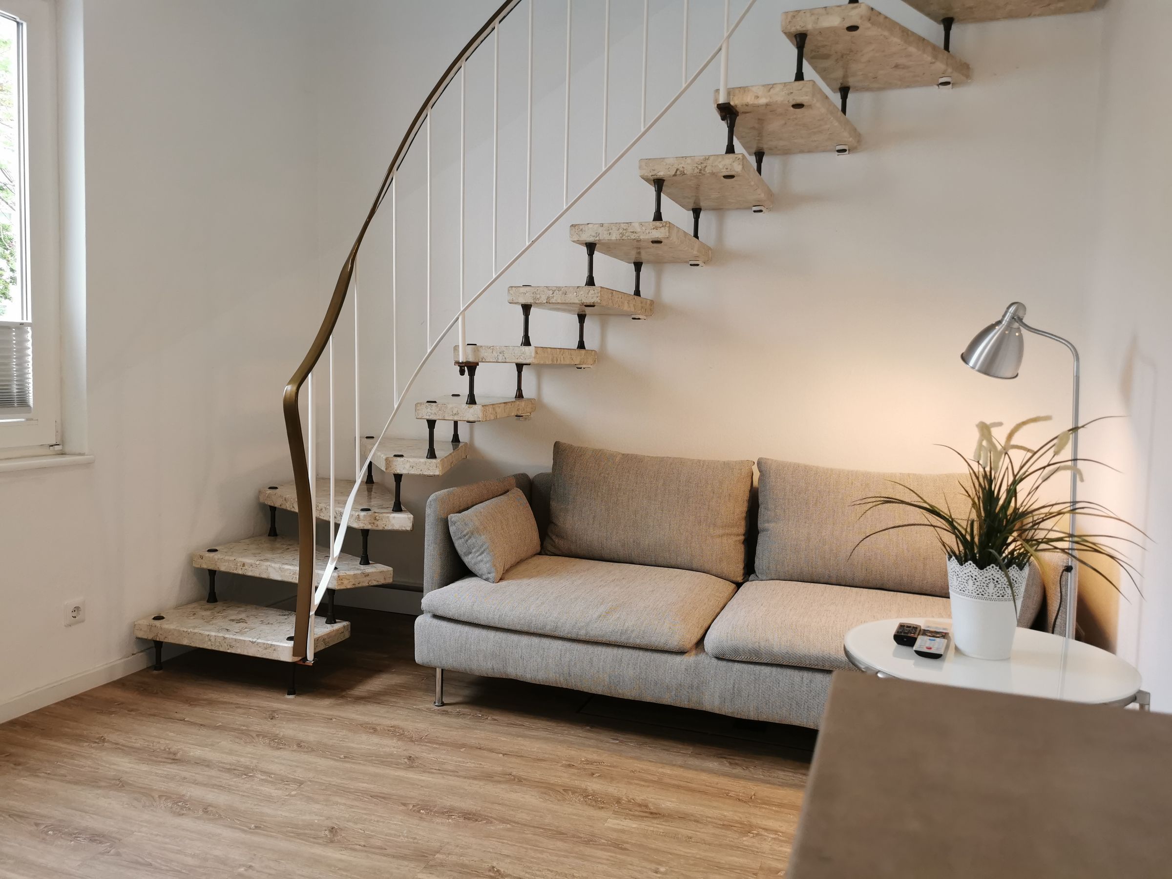 34 m² große, helle und moderne 2 Zimmer Ferienwohnung über zwei Etagen mit separatem Eingang. Schnelles WLAN. Strand- und zentrumsnah.